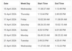 Rahu Kaal _ Info – 15 April – 22 April 2026