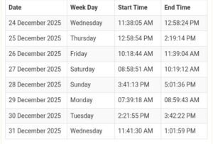 Rahu Kaal _ Info – 17 Dec – 24 Dec 2025