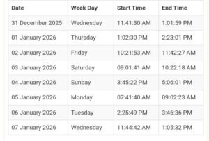 Rahu Kaal _ Info – 31 Dec 25 – 7 Jan 2026